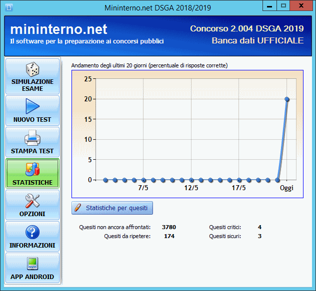 Grazie alle statistiche puoi sapere a che punto sei con la tua preparazione, tenere traccia dei quesiti per te più ostici e mettere da parte quelli sui quali sei sicuro.
