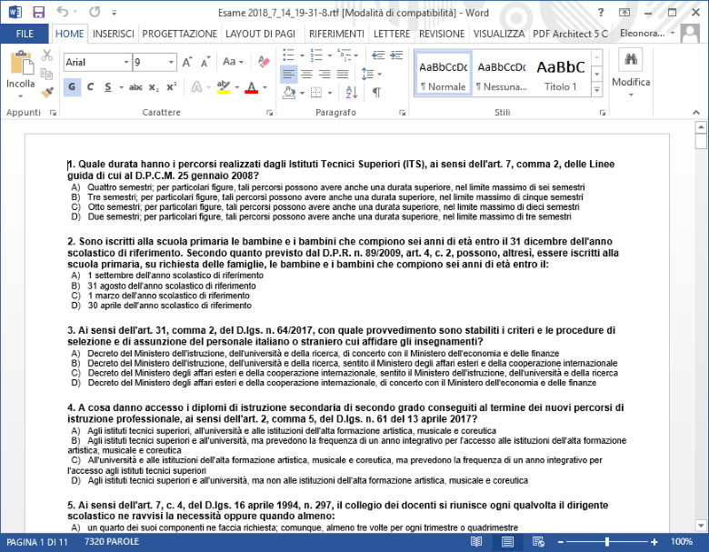 Le esercitazioni con le domande e le risposte in ordine casuale.