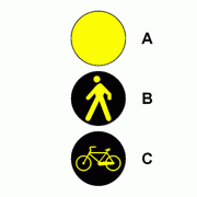 | La luce gialla lampeggiante, del tipo B in figura, indica che nello svoltare a destra i veicoli debbono dare la precedenza ai pedoni | Mostra risposta |