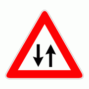 | Il segnale raffigurato preannuncia che, poco oltre, si potranno incontrare veicoli che marciano in senso opposto | Mostra risposta |