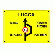 | Il segnale raffigurato indica ai veicoli di massa effettiva superiore a 7 tonnellate diretti a Lucca di cambiare strada | Mostra risposta |