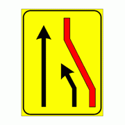 | Il segnale raffigurato indica una diminuzione da due a una corsia di marcia | Mostra risposta |