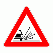 | Il segnale raffigurato preannuncia il pericolo di trovare pietrisco sulla pavimentazione stradale | Mostra risposta |
