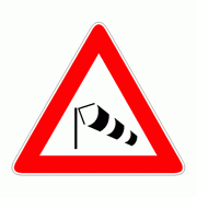 | Il segnale raffigurato preannuncia, in caso di forte vento laterale, un pericolo che è maggiore per i veicoli che trainano caravan | Mostra risposta |