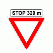 | Il segnale raffigurato preannuncia di fermarsi 320 metri dopo il segnale e dare la precedenza | Mostra risposta |
