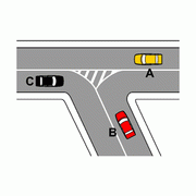 | In presenza dell'isola di traffico rappresentata in figura il veicolo A può svoltare a sinistra, dando la precedenza al veicolo C | Mostra risposta |