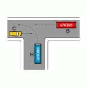 | Nella situazione rappresentata in figura il veicolo H ha la precedenza sul veicolo C, in quanto è un autobus | Mostra risposta |