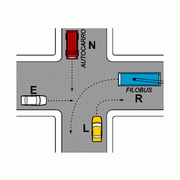 | Nell'incrocio rappresentato nella figura il conducente del veicolo E passa dopo il filobus ma prima del veicolo N | Mostra risposta |