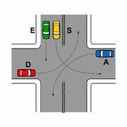 | Nell'incrocio rappresentato nella figura il conducente del veicolo A passa dopo i veicoli E e S, ma prima del veicolo D | Mostra risposta |